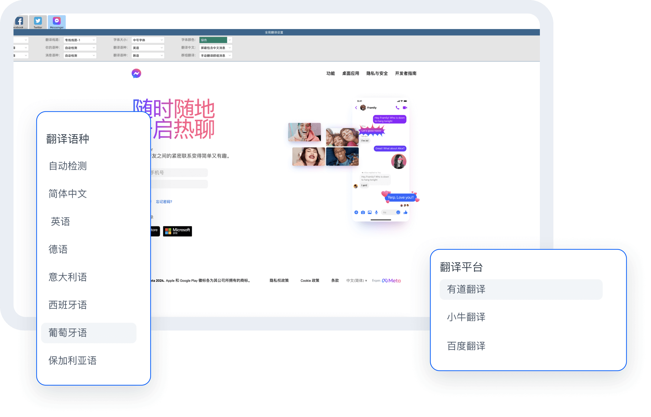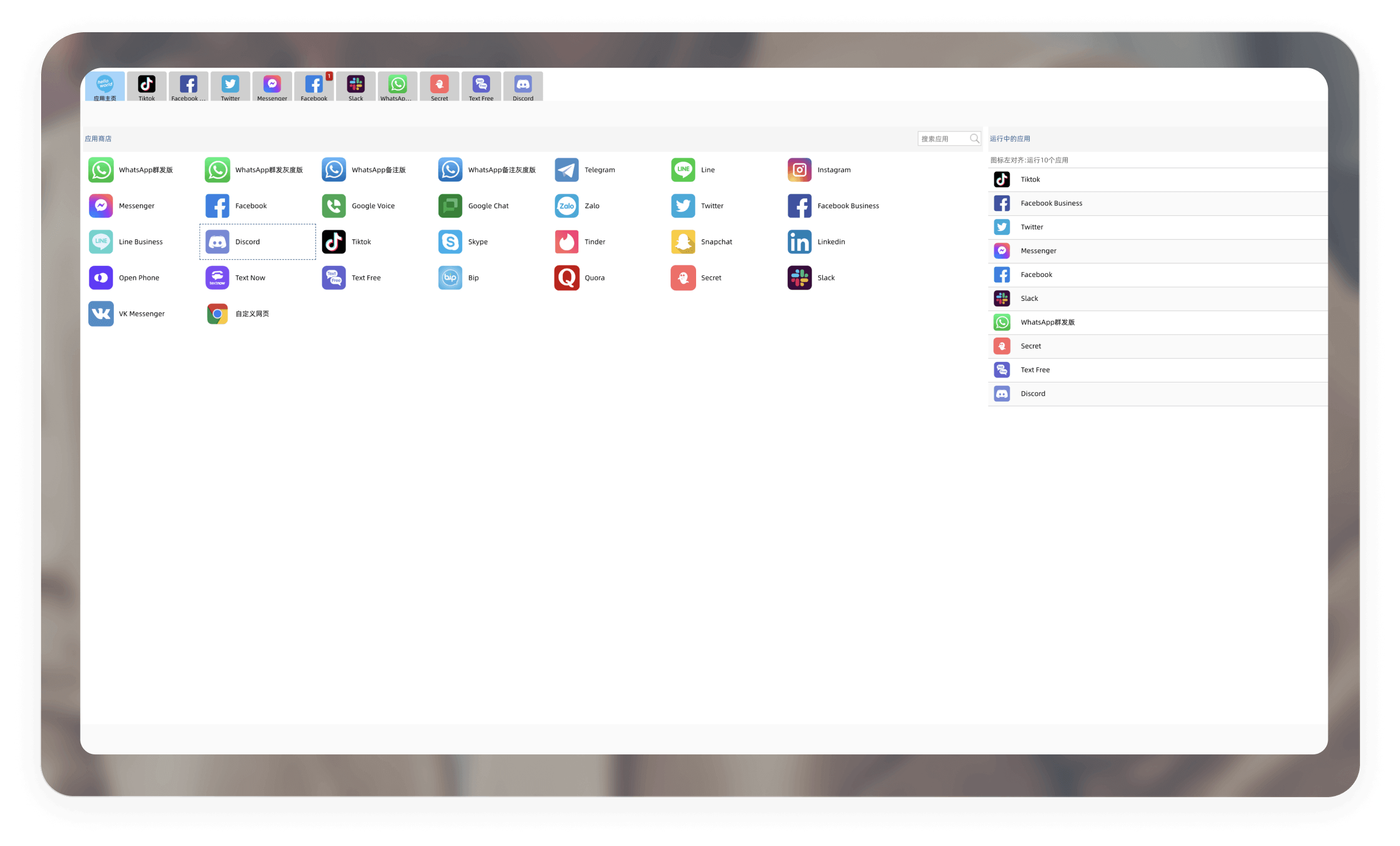 汇聚国际主流社交软件,如WhatsApp、Facebook、Instagram、Line、Tinder等,实现跨平台互联互通,用户可轻松管理多个社交账号,随时随地畅享全球社交新体验,尽情探索多彩社交世界。